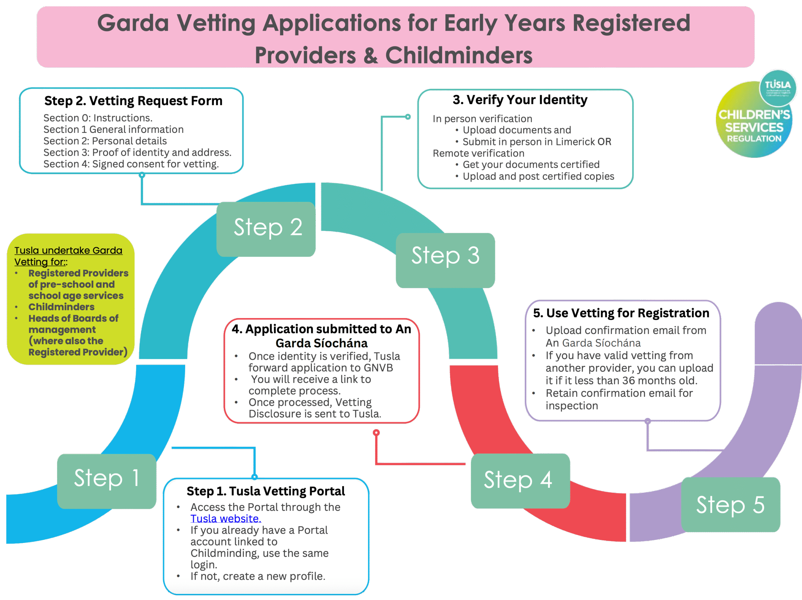 · Tusla manage Garda Vetting services for registered providers including Chairpersons of Boards of Management.