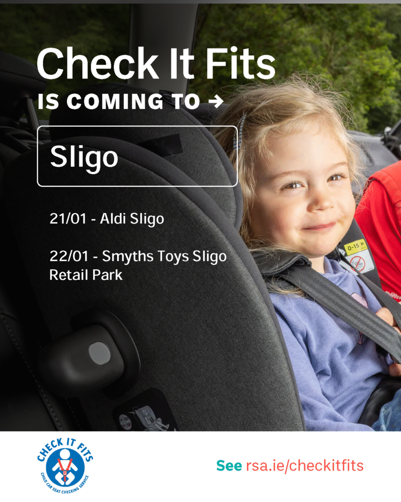 Did you know it’s the law that all children under 150cms or 36kgs must use a child car seat appropriate to their weight and height. In Ireland as many as 54% of child car seats are incorrectly fitted which can lead to serious injury or even death in a collision. Since the start of the service, the RSA’s ‘Check it Fits’ Service has checked over 70,000 child car seats and restraints in Ireland.
